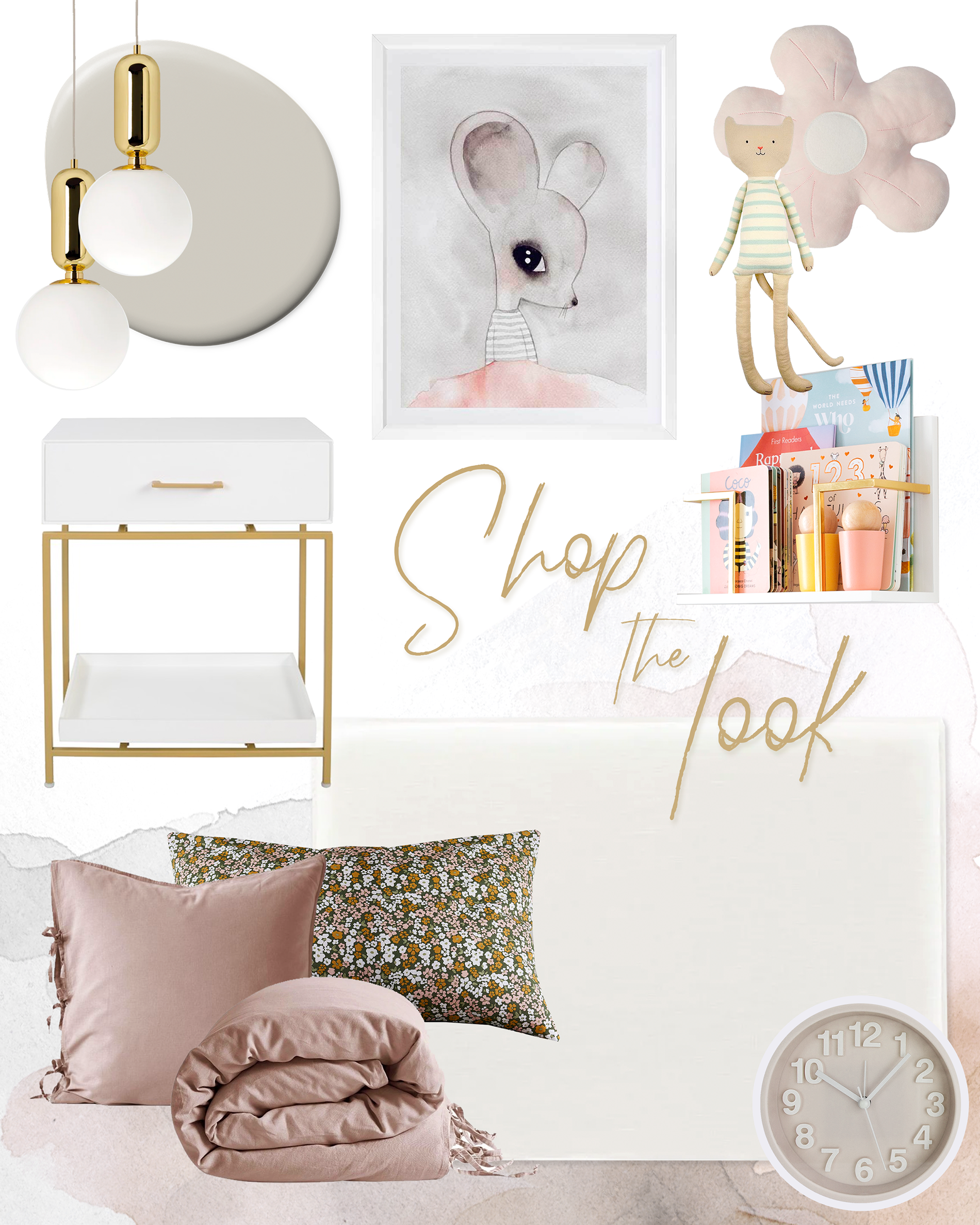 || Pendants || Macey Mouse Poster || Alley Cat Poster || Poster Frames || Flower Cushion || Cat Plush Toy || Floral Sheets || Bedside Tables || Wall Book Ledges || European Pillowcases and Quilt Cover || Headboard || Clock || Vase || Storage Ottoman || Boucle Throw || Mongolian Cushion ||