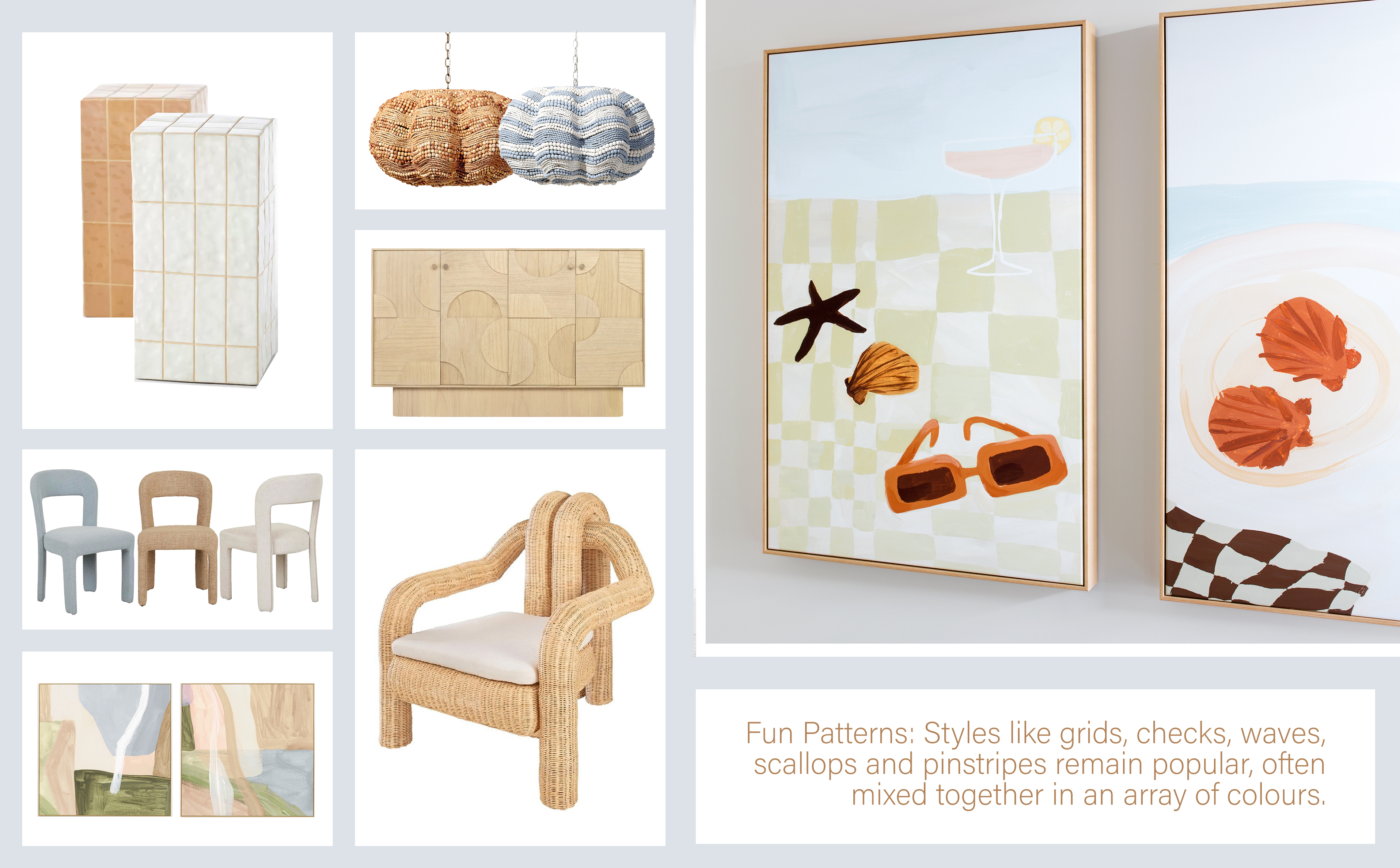 Have fun with pattern play like bold stripes, scalloped or wavy edges, florals or anything that feels playful and summery. Layering different patterns adds depth and personality without feeling overdone.